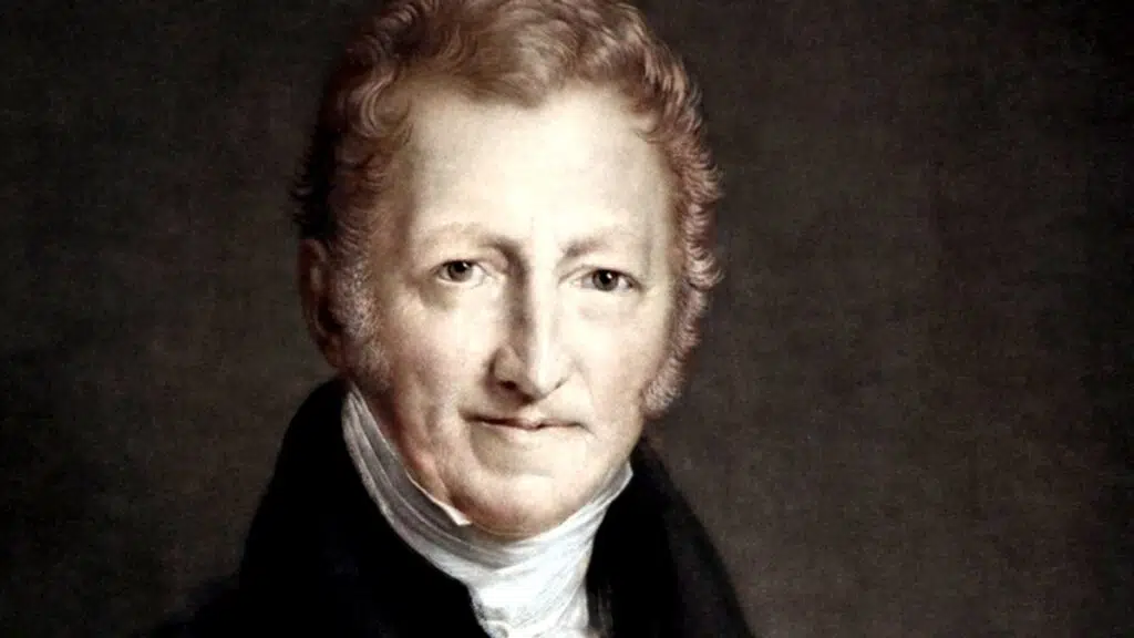 Nesse cenário, o economista e clérigo Thomas Robert Malthus publicou, em 1798, o livro “Ensaio sobre o Princípio da População”. Ele observou o crescimento populacional na Grã-Bretanha e nos Estados Unidos, que ainda eram principalmente rurais. A partir disso, ele criou sua teoria.